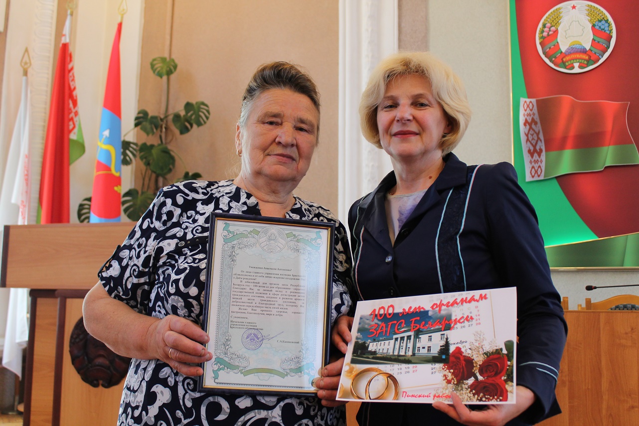 У 1997 годзе Анастасія Антонаўна за паспяховую працу была ўзнагароджана граматай Міністэрства юстыцыі Рэспублікі Беларусь, у 1998 годзе - шаноўнай граматай Пінского райвыканкама. “ЗАГС - гэта любоў усяго майго жыцця”- так пранікнёна і шчыра гаворыць Анастасія Антонаўна.