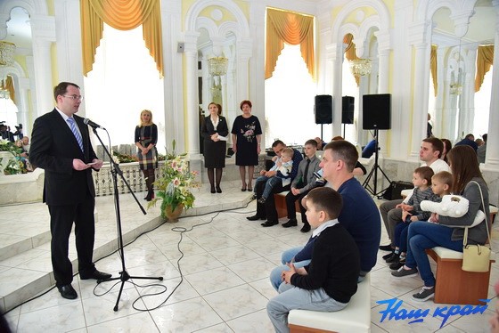 – В жизни любого человека семья, дети, забота о близких остаются непреходящими ценностями. В крепких семьях растут счастливые дети. Наше государство уделяет большое внимание поддержке семей. Мы надеемся, что ваши малыши будут достойными жителями нашего города, области, страны – красивыми, жизнерадостными, успешными, полными любви и доброты!