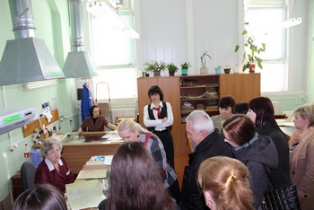 Участники семинара посетили Государственный архив Брестской области. Директор архива А.Г.Карапузова провела экскурсию, рассказала об организации работы по обеспечению сохранности документов Национального архивного фонда Республики Беларусь и оборудовании архивохранилищ. Присутствующие ознакомились с фотовыставкой «Они хотели жить… », посвященной трагедии мирных жителей Брестчины в годы немецко-фашистской оккупации, посетили кабинет-музей архива и архивного дела.