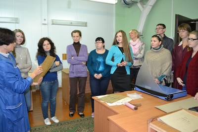 В рамках трехдневного обучающего курса, в котором приняли участие 11 слушателей, директор архива А.Г.Карапузова ознакомила их с историей архива, с составом и содержанием документов, хранящихся в архиве, с основными направлениями его деятельности (в сопровождении мультимедийных презентаций, с демонстрацией некоторых архивных документов).