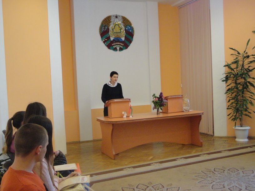 Перед учащимися колледжа выступили: представитель главного управления юстиции Брестского облисполкома - главный специалист сектора правовой работы Малышева Ирина Михайловна, заместитель председателя Брестской областной нотариальной палаты Бреская Татьяна Валерьевна и директор Дома гражданских обрядов Брестского горисполкома Дубовская Зоя Васильевна.