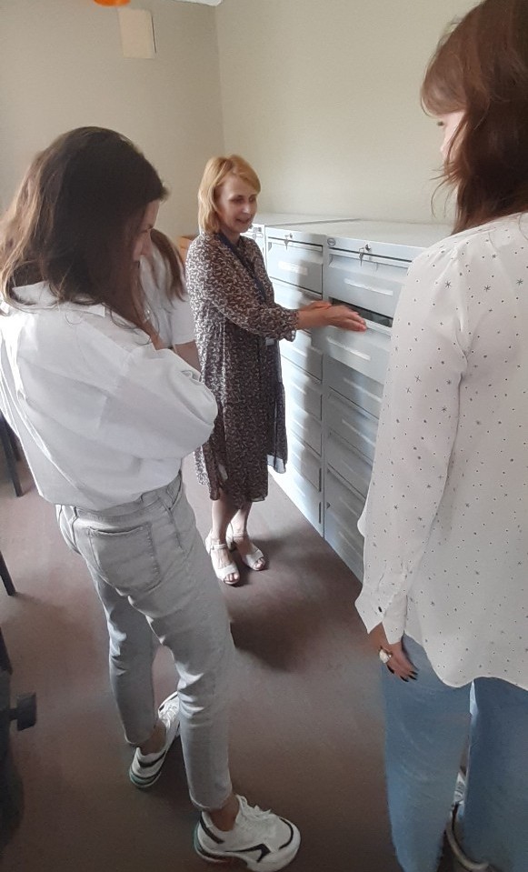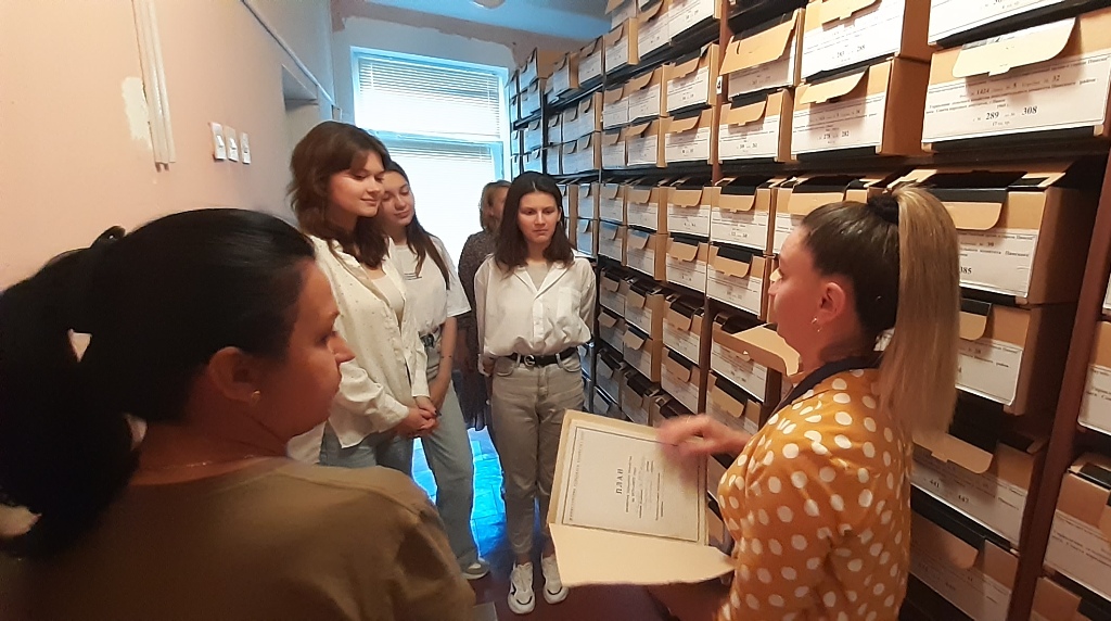 Сотрудники архива Анна Невдах и Жанна Ткачева провели обзорную экскурсию по архиву и архивохранилищам, рассказали ребятам об основных направлениях деятельности, особенностях хранения и использования архивных документов, а также о работе читального зала.