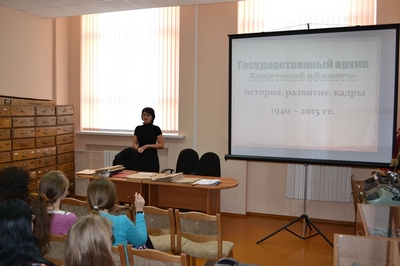 В рамках трехдневного обучающего курса, в котором приняли участие 11 слушателей, директор архива А.Г.Карапузова ознакомила их с историей архива, с составом и содержанием документов, хранящихся в архиве, с основными направлениями его деятельности (в сопровождении мультимедийных презентаций, с демонстрацией некоторых архивных документов).