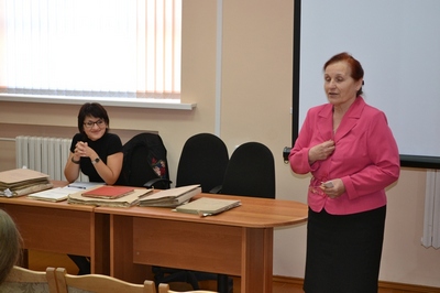 Старейший сотрудник архива Романович Л.Г., которая уже 49 лет служит архивному делу, рассказала молодому поколению о своей архивной судьбе, о специфике профессии архивиста и любви к архивным документам.