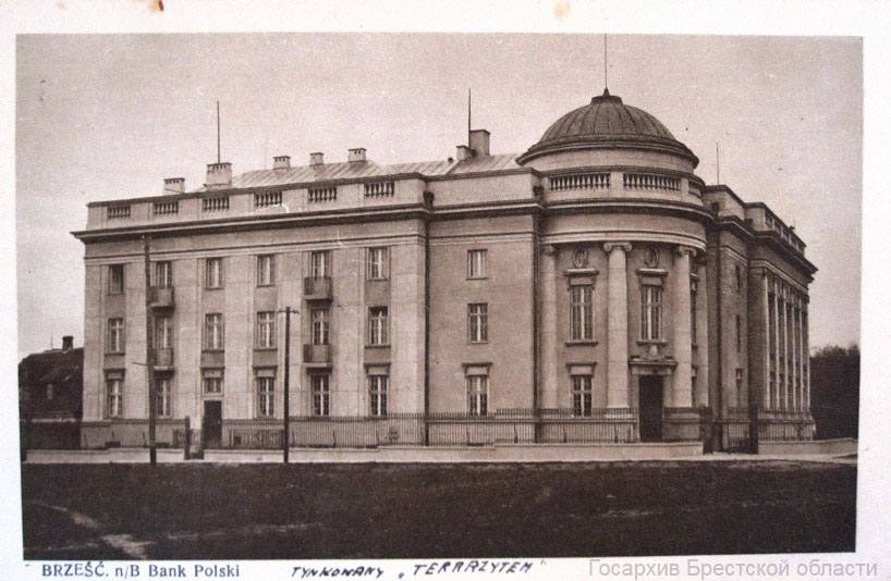 Фото здания Польского банка по ул. Люблинской унии в г. Бресте (ныне ул. Ленина, здание Главного управления Национального банка Республики Беларусь по Брестской области). 1935 год. (Ф. 5, оп. 3, д. 3166, л. 6)