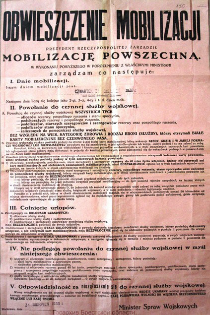 Объявление Министра военных дел Польши о всеобщей мобилизации от 31 августа 1939 г. (Ф. 5, оп. 1, д. 6412, л. 170)