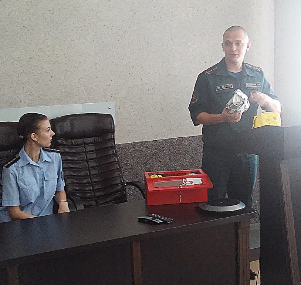 25.05.2018 года в отделе принудительного исполнения Каменецкого района, совместно с инспектором РОЧС по Каменецкому району Назаруком Евгением Иосифовичем, было проведено производственное совещание на тему: «Действия в случае пожара. Правила пользования пожарным огнетушителем, самоспасателем».